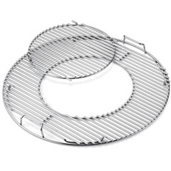 ヒンジ付き焼き網により、網を取り外さずに炭を補充することができます。30cmのめっき加工の網インサートは、伝統的なグリル調理に利用できます。57cmのウェーバーチャコールグリルに対応。