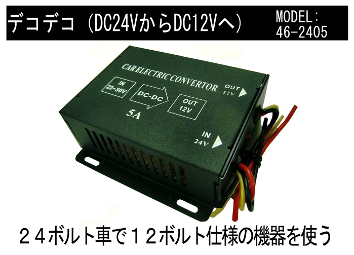 24ボルト車の電源を使い、12ボルト仕様のバックセンサーを動作させる時に使う電圧変換機です。