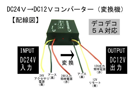 トラックやランクルなどの大型車のDC電源24Vで、DC12V普通乗用車製品を使う時に使用します。