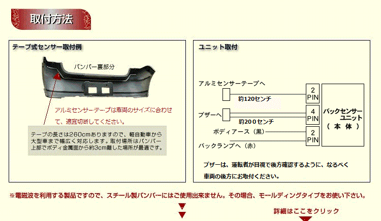 本製品の場合、バンパーの裏側に貼るテープ式なのでその心配はありません。