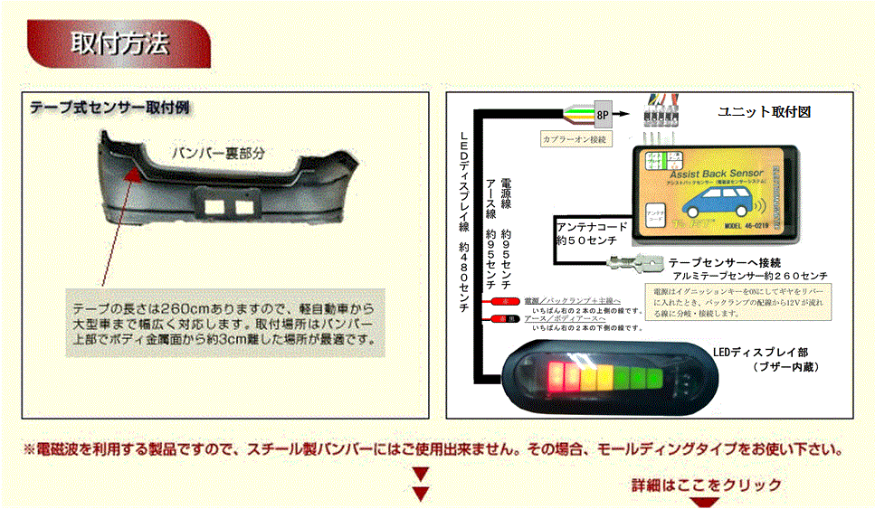 センサーテープをバンパー裏側に貼るだけの簡単取付。