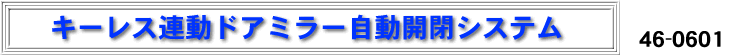 キーレス(ドアのロック・アンロック)に 連動してドアミラーを自動的に開閉! 狭い駐車場やバイクが通る道路の駐車などで威力を発揮!!キーレス連動ドアミラー自動開閉システム モデル:46-0601 【セット内容】 本体×1、配線ケーブル×1、 システムオン・オフスイッチ×1 (サイズ:メインユニット78×73×29mm 重量:メインユニット100g)