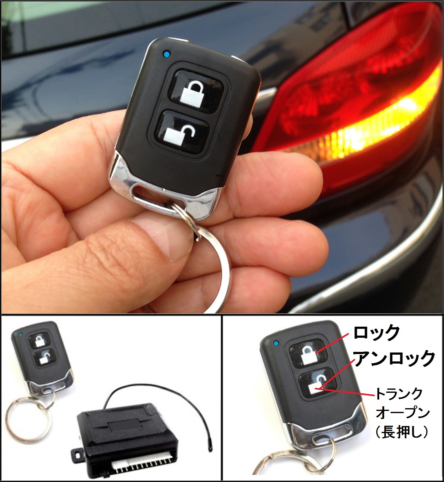 2)車両の手動スイッチでトランクを開ける車種の場合、リモコンドアロック本体と