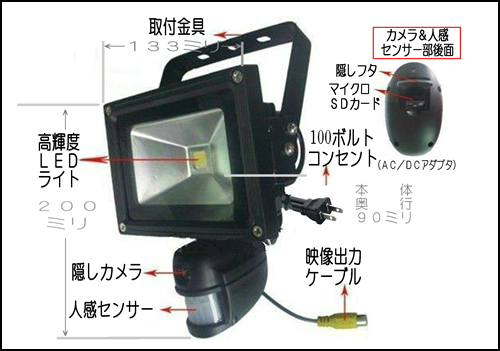 防犯隠しカメラ内臓センサーライト