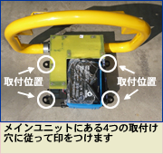 本体メインユニット設置時のボルト取付け穴(4ヶ所)は専用キーで本体カバーを外してから作業するのでボルト取付け穴は本体カバー内に隠れます。