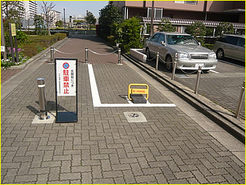 車から降りることなくらくらくゲートの開閉ができます。 |